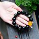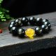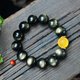 **簡介:** 極品天然金曜石16MM手鏈 雙金眼效應能量強 搭配16MM蜜蠟回文轉運珠 男女同款,金曜石的能量剛烈並且非常純淨,是屬於吸納性的能量,因此黑曜石排除負能量的作用尤為突出。佩戴金曜石可有效的排除佩戴者身上附著的負能量,去除自身的黴運。