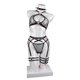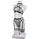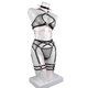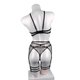 Bra top, garter belt, thong and gloves made of mesh with cute star print, luxury elastic straps with satin finish and golden hardware. Decorated with removable chains and star pendants. Complemented by a choker decorated with spikes and star pendant. Adjustable for a perfect fit.