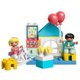 .房屋造型的外盒適合用於遊戲與收納。內附孩子在生日派對等多種場景扮演不同角色所需的各種顆粒與零件。包括同齡人物模型與許多玩具、配件。