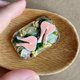 - Miniature set of fish steaks on a board decorated with lemon slices and greens. The miniature is made in 1:12 scale. All parts are fixed with glue. Polymer plastic, acrylic paints, acrylic varnish and cardboard are used as materials for manufacturing.
