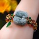 【名稱】飄藍花翡翠貔貅編織手鍊