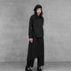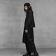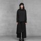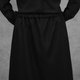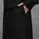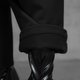 採用內刷毛平織布料,穿著時柔軟保暖,兼具舒適度與實用性。單邊斜裁片的細節增添層次感,使簡約的全黑褲款在低調中仍保有設計亮點。