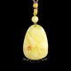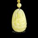蠟質瑩潤細緻,色澤黃潤艷麗,整體亞光更顯質感;觀音開臉飽滿,發髻整齊絲絲分明、手持法瓶,低首垂目,面相飽滿豐潤,俯瞰塵世眾生;背面雕刻蓮花,一塵不染;面容慈愛安詳、沈靜嫻雅、靜謐慈悲。觀音為佛教中慈悲和智慧的象徵,有求必應,降福世人;寓意觀音庇佑,吉祥如意。名家篆刻,以姓名末端清字為印,為劉師又一嘔心力作,值得典藏納奉⋯