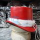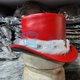 Step into the holiday spirit with this handcrafted Santa-themed Red Leather Top Hat, designed for Christmas lovers, performers, and festive event outfits.