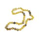 出牙項鍊,尤其是用琥珀和其他寶石(例如標有 HH12 的寶石)製成的項鍊,經常被父母用作緩解嬰兒出牙不適的自然療法。人們認為琥珀含有琥珀酸,可能具有抗發炎特性。然而,值得注意的是,這些項鍊的有效性很大程度上只是傳聞,人們對潛在的窒息危險和勒死風險提出了安全擔憂;因此,應始終在密切監督下使用它們,並且通常建議在孩子睡覺時或無人看管時將其取下。