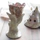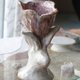 純手捏雙生兔子陶瓷燭台 - 香氛蠟燭/燭台 - 陶 粉紅色