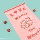 毛巾上的 Hello Kitty 以18個不同語言的LOVE組成,象徵不管一個人來自哪裡,只要心中有愛,聚在一起就有力量。