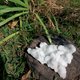 《被著白衣的螢石》表面佈滿白水晶的結晶,可以用來淨化水晶; 底部是綠螢石。白水晶的小結晶在日光下閃閃生輝,形狀也像一片雲朵,在外面亦能看到淡淡的綠色。