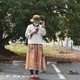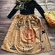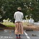我用柿子丹寧反複染色由複古舊佈製成的日式毛巾,製成了一條裙子。