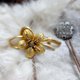 **日本中古金色水鑽雛菊花朵心口針胸針別針 高級二手古著珠寶首飾**