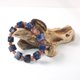 【特徵】運用金太陽與藍紋石搭配串聯而成的手串。顏色紅與藍的搭配,十分鮮艷奪目。使用了多顆方形素材,加強手串的沉著和穩重感。另外再加上一顆大的金太陽隨形做點綴,增強人的自信與熱情,凸顯個性。具有領導風範的一條手串。