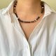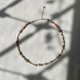 以手工陶珠、淡水珍珠、銀珠、銀管、玻璃管(珠)、金屬珠、鋼線手工製作而成的項鍊。
