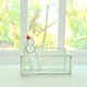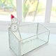卡片座特地使用透明波點的玻璃,營造出一片雪景,中間是一塊透雪花白玻璃像極了一條雪路,小雪人從雪路慢慢爬上了卡片座,靜待聖誕的來臨。