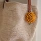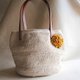 - 搭配黃色 煙火花 / 繡球花,最低調獨特的棉麻手作編織包+皮質提把 不一樣的鈎織法,紋路獨特 也更扎實