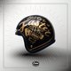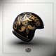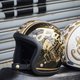 帽體左邊彩繪文字 Faster&Faster 快,更快,與右邊彩繪文字 caferacer,表達了速度與自由的精神,以及 cafe racer文化
