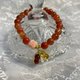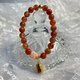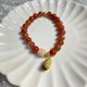 艷紅的南紅瑪瑙搭配一樣金燦橘紅的金太陽石,都帶來正面陽光的力量,搭配溫柔女皇貝柿子和南紅花生帶來期待好事發生的正能量美好寓意。