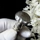 這枚小巧的古董,是法國19世紀工藝的縮影,瓶身採用澄澈的水晶玻璃,線條柔美,與之完美結合的是頂部與底座精緻包鑲的純銀飾件,其上的「野豬頭」印記確認為法國800成色純銀,帶著跨越世紀的歷史質感。銀飾上的捲曲花卉紋路,低調地展現著當時貴族階級的優雅品味與細膩生活。它曾是女士們隨身攜帶的香水瓶或香醋盒,用於提神或作為社交場合的秘密武器。其精緻的銀蓋打開後,內部還有一個原裝的玻璃塞子,這是確保香氣不散、防止滲漏的細節設計。值得注意的是,它圓弧形的水滴底座是故意的設計,無法獨立站立,這恰恰體現了其作為隨身珍品的特徵,需要被珍愛地握於掌心或安臥於梳妝台,它早已超越了實用價值,成為一段歷史、一件藝術,等待一位懂得欣賞這份脆弱與雋永的主人,將這份沉靜而優雅的法式情懷帶回家中珍藏。