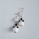 黒耳を持つ可愛い白色の猫ちゃんモチーフのとんぼ玉ビーズをメインに8mmと結構存在感のあるマーブルホワイト色のファイアポリッシュチェコビーズ、小さめのガラスビーズなどを合わせたお洒落なピアス/イヤリングとなっております。
