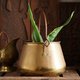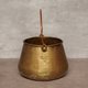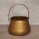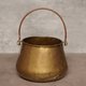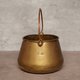 黃銅鍋由手工製造,鍋身底部可見不規則槌打痕跡,搭配同材質的弧形手柄,這類黃銅鍋在歐洲早期常見於農莊或鄉村家庭中,不論用於烹煮、取水或儲物皆可,如今更適合作為家居擺設或是植栽盆器使用。