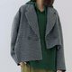 - / 前長後短西裝短版外套 / 前幅下襬內斜切 不對稱剪裁 / 側開衩設計 延展短版輪廓 / 細緻千鳥格毛料 柔軟中帶結構感 提升日常造型感