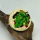 繡有綠葉的手工戒指。 圖案是我設計的,也是我繡的。 我在每幅刺繡圖片中使用最大數量的顏色,使其更加逼真和豐富多彩。