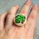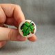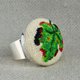 這款綠色戒指由棉繡線繡在亞麻織物上。
