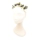 The faux leather flowers in gold are 6cm high and 5.5cm wide. The headband is gold and composed of two levels.