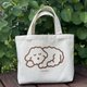 This small tote, sized at 24 × 16.5 cm, carries the quiet warmth of an illustration of Mori peacefully asleep.
