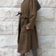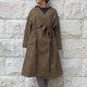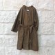 オープンでも、ボタンで留めても、ベルトでウエストシェイプしても着れる3way 仕立て。中央の大きなくるみボタンがポイントです。右にはフラップ付きパッチポケットが、左にはサイドポケットが付いています。左右非対称な大きめのポケットは、デザインのアクセントにもなっていますが、使い勝手も良く大変重宝します。