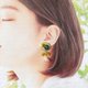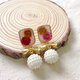 【白球 白花蝴蝶結押花耳環】 兩款鮮豔的耳環 使用不對稱的押花 搭配蝴蝶結和白球白花 戴起來很可愛又日系!