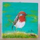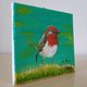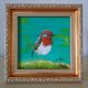 用油畫的方式表現出了在草地上活靈活現的知更鳥、