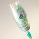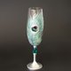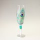 Single champagne wine glass, hand-painted. Peacock feather design in silver and blue0green-purple colors. Delicate iridescent effect. Silver plating imitation on the base and stem, distress effect. Retro outlook. One of a kind glass, READY to SHIP!