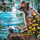 這幅充滿表現力的油畫描繪了一隻生活在泰加林中的熊,周圍環繞著充滿活力的金色、綠松石色和大地色調。筆觸營造出層次感與動感,捕捉了野性自然的原始能量與寧靜。