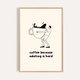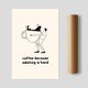 畫面採用米白底色與柔黑線條,呈現自然溫潤的視覺節奏。它不僅是幽默插畫,更是對現代生活壓力的一種小小調侃——在繁忙的日常裡,咖啡是我們最溫柔的戰友。
