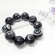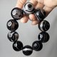 嚴選黑纏絲瑪瑙,精工磨製大器圓潤珠飾,寶石顆顆**帶雙眼,寶石體材相當大(25mm)**,纏絲紋理(**極黑、極白兩種陰陽色彩**)清晰、合諧有魅力,為**助事業、開智慧、具領袖風範**之逸品,極其難得,深具**收藏價值**。