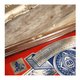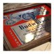 約1980年代的百威(Budweiser)啤酒鏡畫小招牌,採用鏡面材質印刷了經典的紅藍白品牌標誌,具有濃厚的復古美式酒吧風格。鏡畫尺寸小巧且輕盈,外部為木質邊框,帶有老件的自然舊化痕跡,是極佳的復古陳列裝飾品或贈禮收藏品。