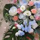 / 以粉色康乃馨與藍色蝴蝶蘭為主調,融合進口玫瑰與繡球花的細膩層次,展現柔美與高雅並存的氣質。 /