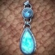 (下方):水滴型 海紋石拉/利瑪石(Larimar) 尺寸:約 13 x 25mm
