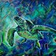 - Turtle Original contemporary painting by artist Ginna Paola. Voluminous texture, medium size: 12х16х0.4 inches | 30x40x1.5 cm. Mixed technique: oil, stretched canvas, acrylic, texture paste. This Big Turtle is underwater. Golden shimmers combined with the colors of a typical underwater environment: blue, light blue, turquoise, green, purple.