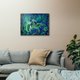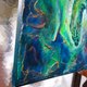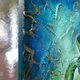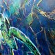 The color palette of the painting: many shades of blue, green, purple. Gold paint is used to break up the space into multiple sectors. This technique conveys the idea of volume and creates the necessary environment. With the help of texture paste, the picture looks three-dimensional and unusual. Abstract painting in oil, acrylic mixed technique.