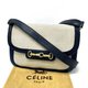 【LA LUNE】稀有中古二手Celine海軍藍拼白色馬車金扣皮革單肩側背斜孭包手袋
