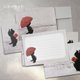 雛罌粟の花を手に佇む子猫、傘をさして佇む子猫の大人可愛いペーパーグッズです。