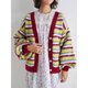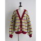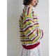 ふんわりとした毛足のあるウールナイロン糸で編み立てたボーダーカーディガン。