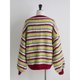 デザイナーがネパールにいた時に、糸の色のサンプルで編み子さんがサクッとストライプを作ってくれたのが始まり。四色の色糸を染めてもらってkapuwa初の全体ボーダーの柄が誕生しました。