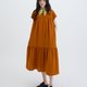漣光半開襟拼接洋裝-日橙 - 洋裝/連身裙 - 其他人造纖維 橘色