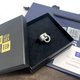 ドアノックのデザインのレザーを張ったシルバー925リング。