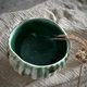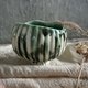碗底鋪著沼澤綠釉,彷彿巨葉塊塊堆疊,