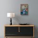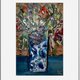 Canvas 1: Tall patterned blue vase with vibrant blossoms