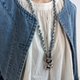 材質:優質黃銅鍍白金、牛仔面料、木環、蕾絲