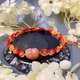 手鍊的材質以天然的水草瑪瑙和紅纏絲瑪瑙精心編織而成,這些瑪瑙圓珠的色澤鮮艷,為整體設計增添了生命力。無論是在陽光下的閃爍,或是室內的柔和光線中,這款手鍊都能展現出令人愉悅的色彩對比,讓佩戴者的手腕更顯雅緻。